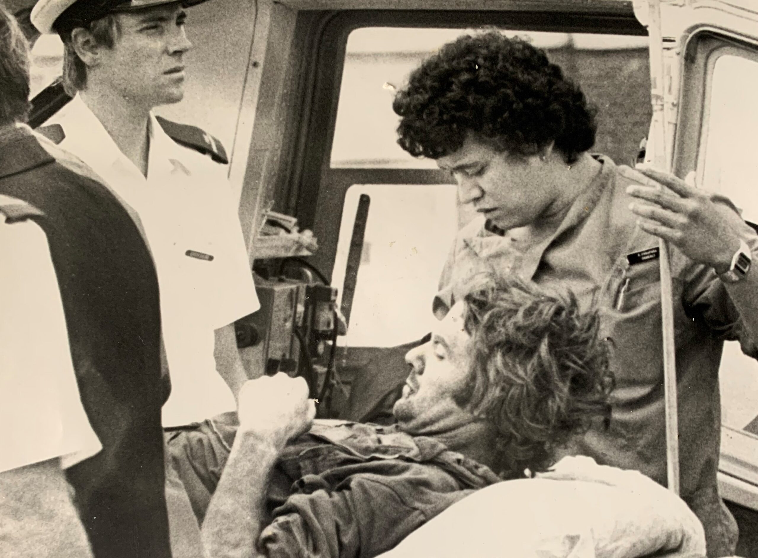 Peter Button landed in a clearing. The paramedics got me on a stretcher and over a fence and to the helicopter. They gave me plasma and stabilised me and Peter flew me to Wellington.